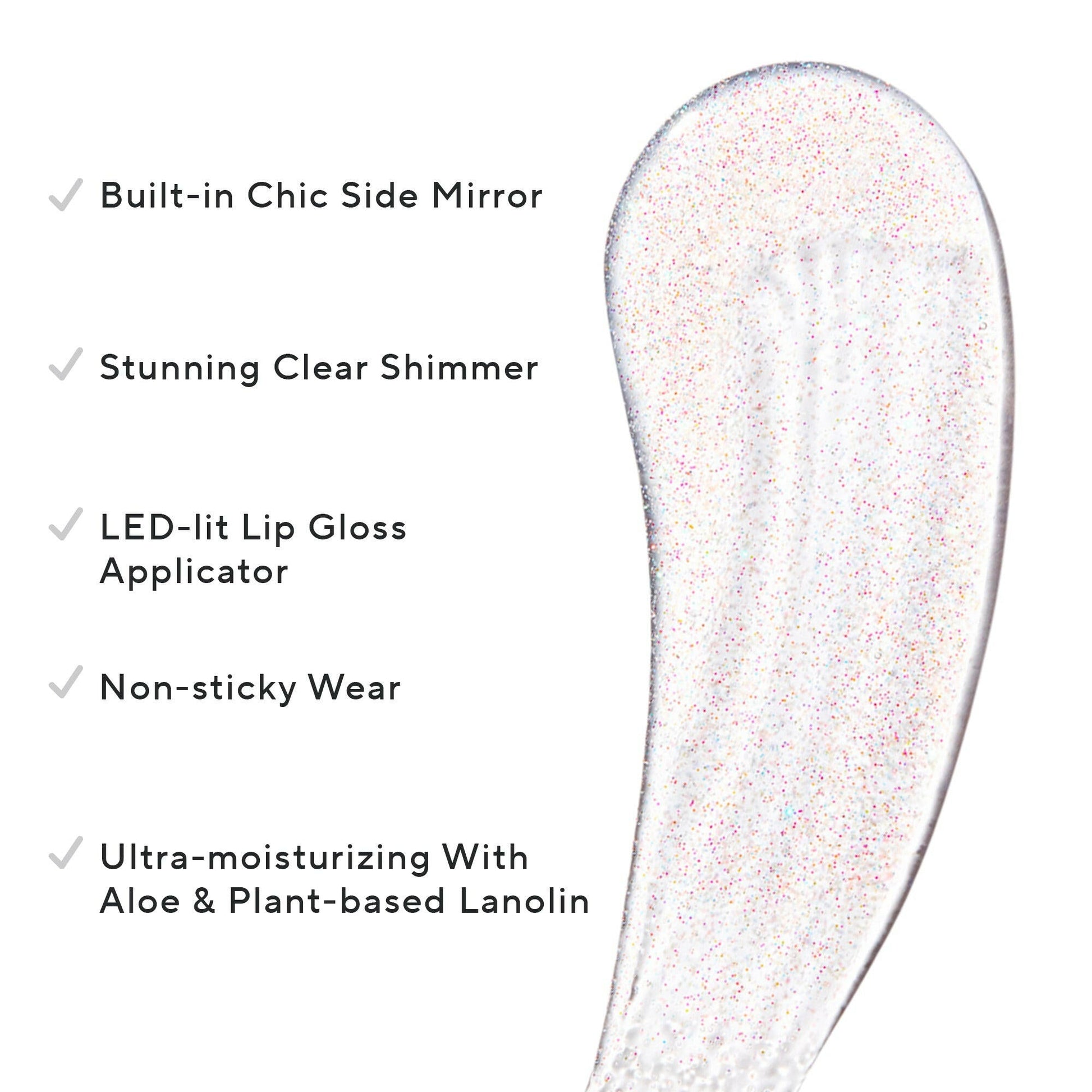 ABOUT: Light up your lips with Mirabella Beauty's GLOW Light-Up Lip Gloss — the perfect fusion of glamour and innovation. Infused with ultra-hydrating Aloe and plant-based lanolin, this vegan, gluten-free formula glides on effortlessly, delivering a brilliant shine without stickiness. What sets this gloss apart? An LED-lit applicator wand and sleek side mirror, making touch-ups a breeze — anytime, anywhere. Whether you're adding a subtle shimmer or a bold pop of color, GLOW ensures your pout is always the center of attention. Illuminate your beauty routine with Mirabella's must-have lip gloss!